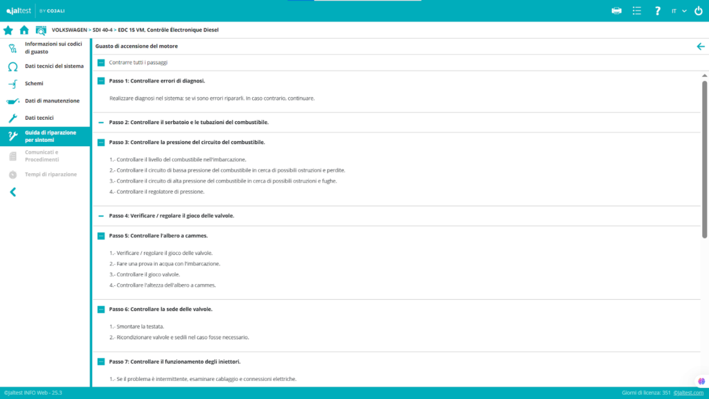 - Sul Volkswagen SDI 40, errori comuni includono problemi di connettività nel circuito carburante o guasti al regolatore di pressione.